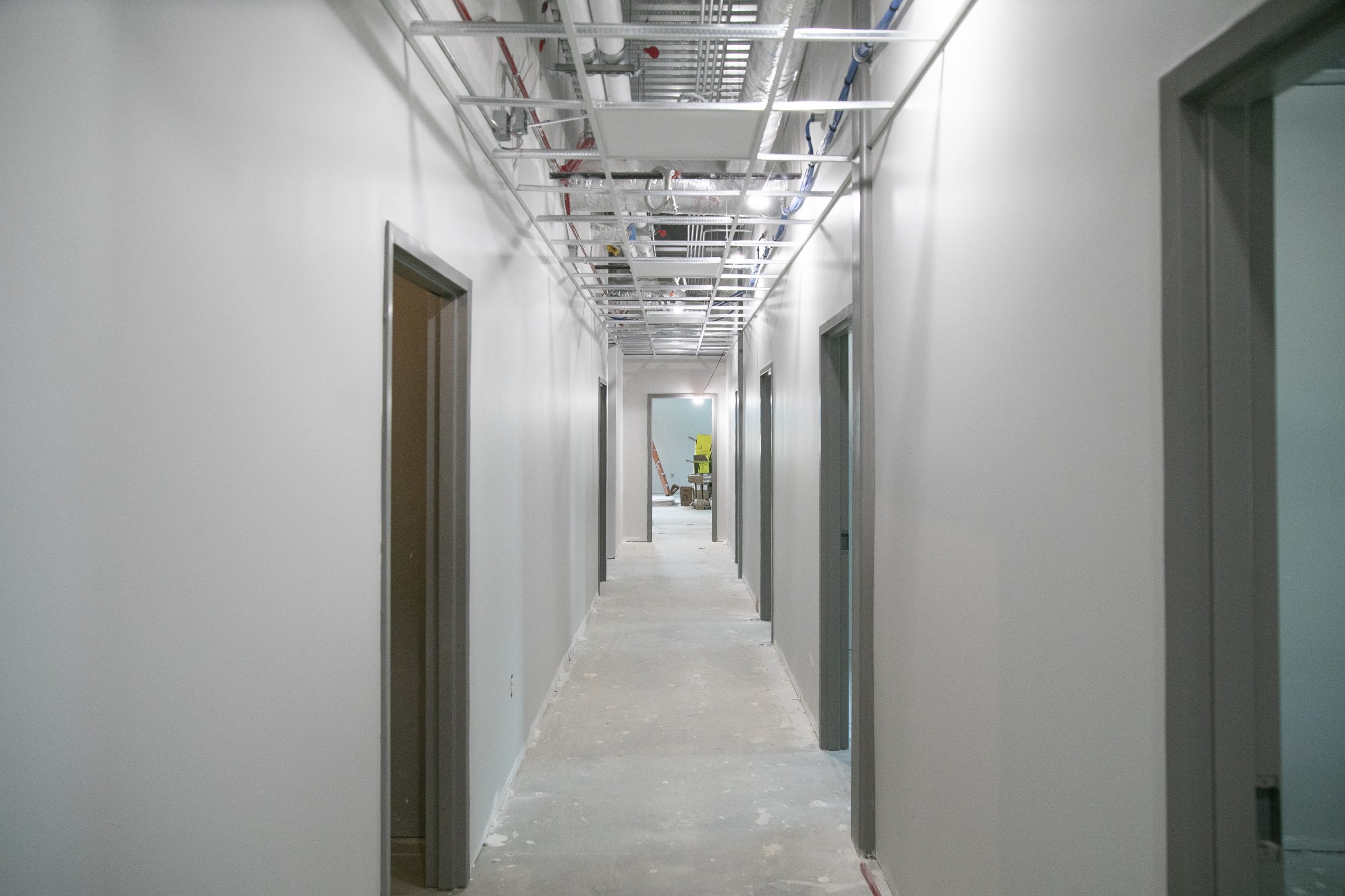 The construction project is on schedule, according to Sheriff Joey East. With the completion of the drywall, the rooms are all defined, and the ceiling grid is being installed.